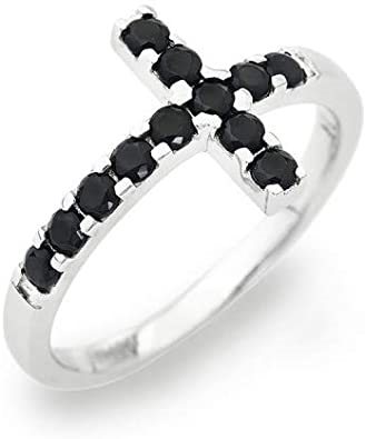 Gioiello Amen Da Donna, Anello Croce Bianco E Zirconi Neri
