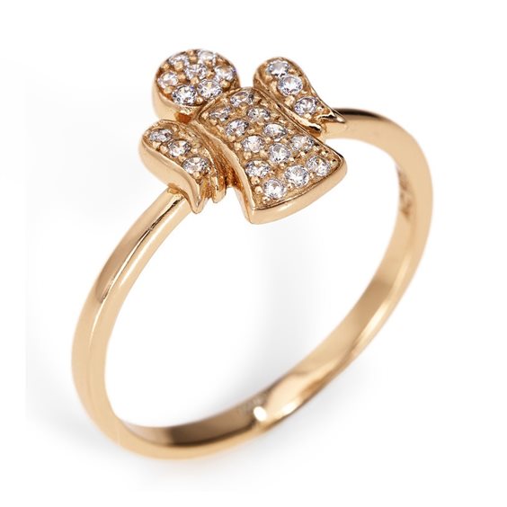 Anello Di Amen Da Donna Della Collezione Angeli. Gioiello In Argento 925 Con Zirconi Di Colore Rosè. Gioiello Con Simbolo Di Angelo. Anello Della Misura 12.
