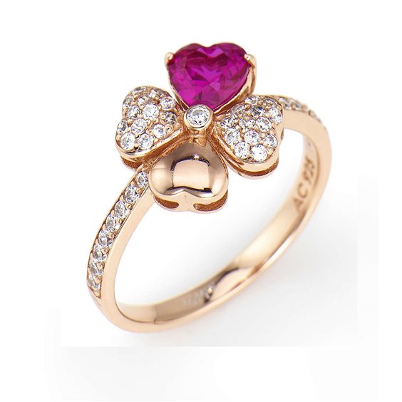 Anello Amen in argento 925 colore rosè con zirconi bianchi e rossi