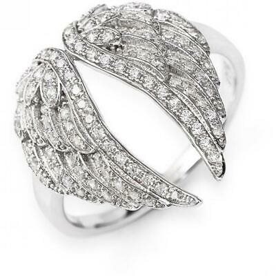 Anello in Argento 925/°°° rodiato con 2 ali tempestate di zirconi bianchi; diverse misure disponibili su richiesta
