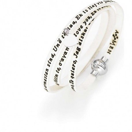 BRACCIALE AMEN IN PELLE COLOR CREMA, SCRITTA TI AMO IN TUTTE LE LINGUE DEL MONDO COLOR MARRONE, CIONDOLO A CUORE IN ARGENTO, LUNGHEZZA 54 CM E 57 CM