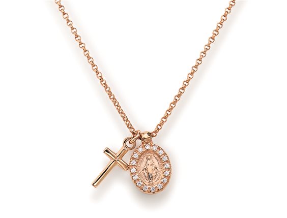 Collana in AG925 e zirconi bianchi (Lung. 40+4cm - h charm croce 1cm, miracolosa ø 1cm)