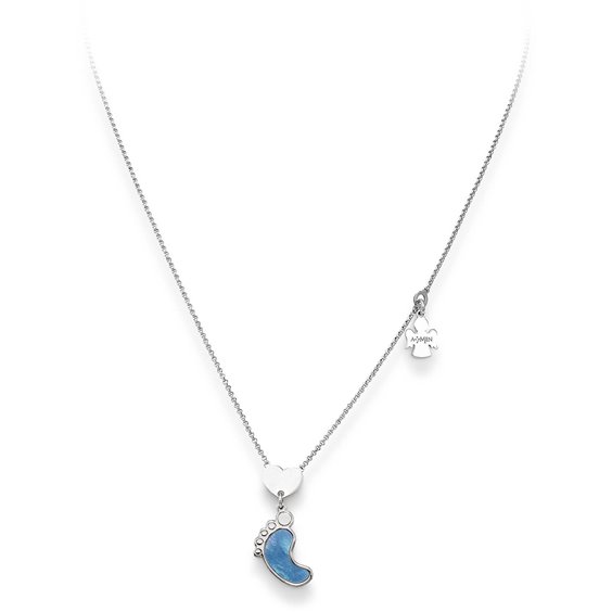 Collana Da Donna Di Amen Della Collezione Cuore Di Mamma. Collana In Argento 925 Di Colore Rodio Con Madreperla Blu. Lunghezza Del Gioiello Di 40+4 Altezza Del Charm Di 2Cm.