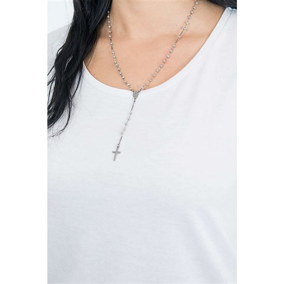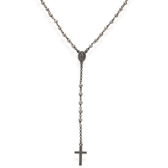 Rosario Classico In Argento 925 E Rutenio Arricchito Da Cristalli Fumè. Gioiello Della Lunghezza Di 50+2Cm.