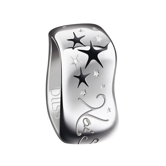 ANELLO -FASCIETTA ARGENTO *NOI SIAMO FATTI DI STELLE* Anello in argento, diamante naturale, stelle in smalto nero e stelline con effetto fosforescente, Made in Italy, disponibile nelle misure 12, 15, 18, GR 9 larghezza mm9,3