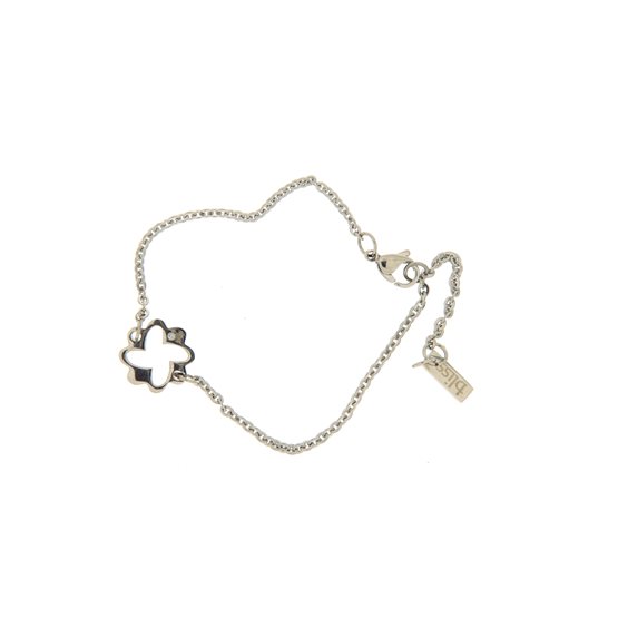 Bracciale con ciondolo a fiore in acciaio inox con incastonato diamante da 0,005 kt