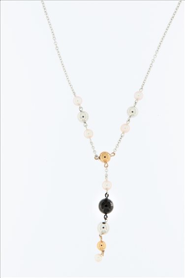 COLLANA DONNA ACCIAIO INOX CON PERLE ROSA 4,5-69 MM