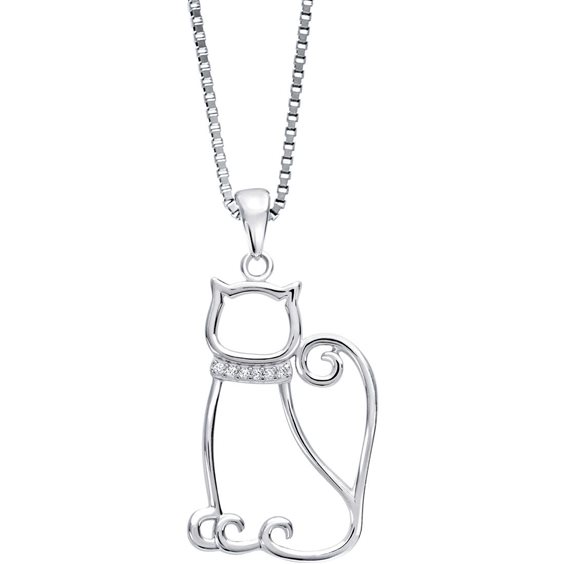COLLANA IN ARGENTO E CUBIC ZIRCONIA CON CIONDOLO A FORMA DI GATTO