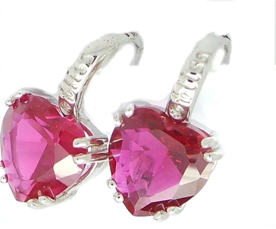Orecchini linea Princess in argento 925 con pietre sfaccettate di zirconia taglio a cuore di color rosso porpora, chiusura a monachella. Lunghezza totale dell orecchino mm 18 e pietra ø mm 10. Peso grammi 4,8 totali.