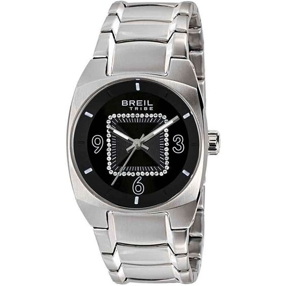 OROLOGIO BREIL TRIBE DONNA IN ACCIAIO CON MOTIVO DI STRASS SUL QUADRANTE NERO.