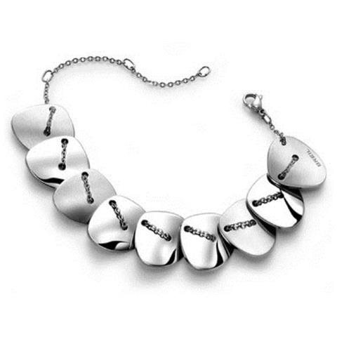Bracciale in acciaio bilux, catena in acciaio lucido con chiusura a moschettone. Lunghezza regolabile da cm 16 a cm 21.