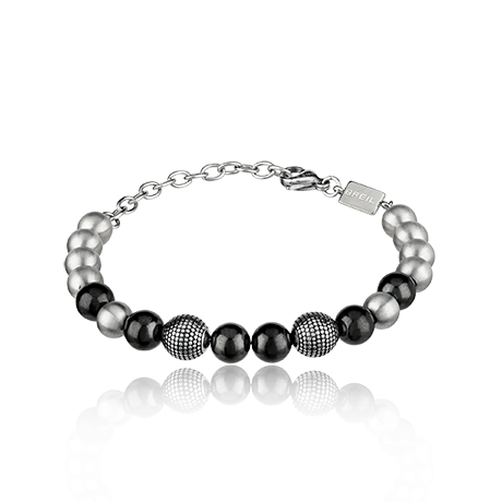 Bracciale Da Uomo Di Breil Della Collezione B Fence. Bracciale Con Sfere In Acciaio Satinato E 6 Sfere In Shungite Nera. Chiusura A Moschettone. Lunghezza Minima 17,5Cm, Lunghezza Massima 22,5Cm.