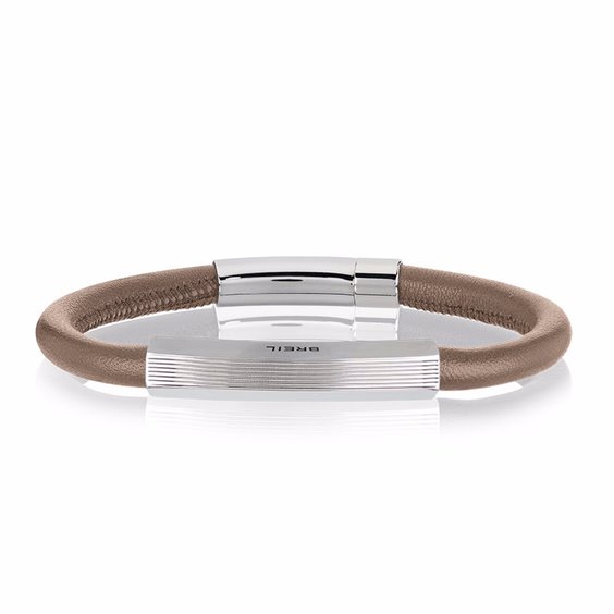 Bracciale in pelle color tortora e targa esagonale con chiusura ad incastro con pulsante. cm 20