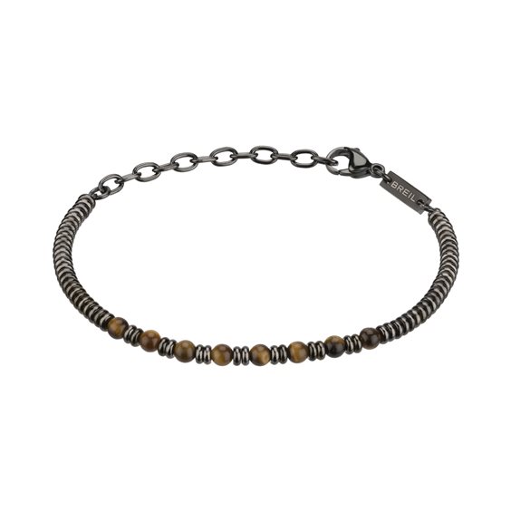 La collezioni di bracciali da uomo B Fance si compone di tante proposte tutte diverse, da scoprire e da indossare anche accostandole insieme. In questa versione, il bracciale è formato da piccoli elementi in acciaio con finitura IP gun, intervallati da micro sfere di occhio di tigre, pietra dura che armonizza i centri energetici, aiuta nella meditazione e protegge dalle avversità.