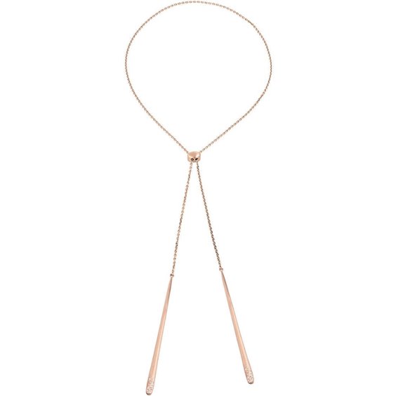 Collana lunga in acciaio satinato IP rose con due pendenti a forma di goccia, impreziositi da una cascata di cristalli proposti nelle gradazioni del rosa. Grazie e una semplice modulo a scorrimento, la lunghezza dei pendenti può essere regolata e adattata ad ogni look.