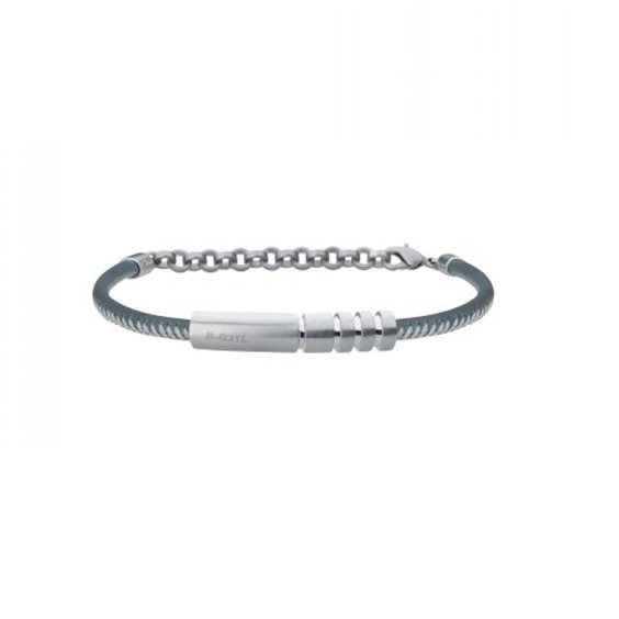 Bracciale maschile in pelle color fango con impuntura a contrasto ed elemento in acciaio bilux.