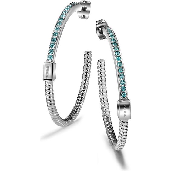 ORECCHINI A CERCHIO IN ACCIAIO CON INSERTI SWAROVSKI TURCHESE CON CHIUSURA A FARFALLA