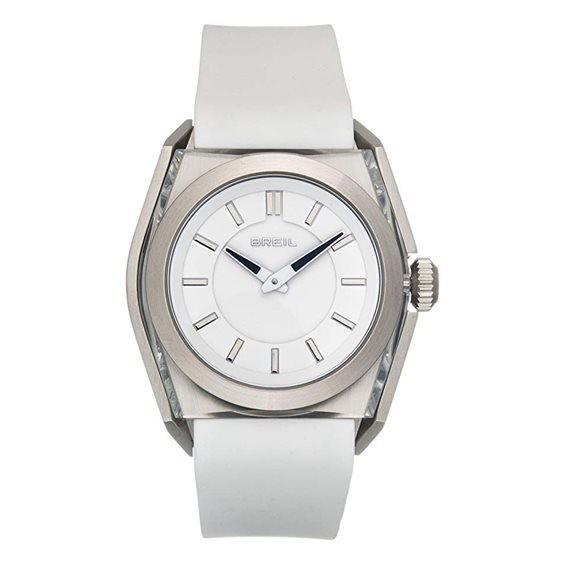 Orologio con movimento al quarzo, cassa in acciaio e vetroceramica trasparente, diametro 40 mm, quadrante bianco, cinturino in silicone bianco con chiusura deployant, WR 10 ATM
