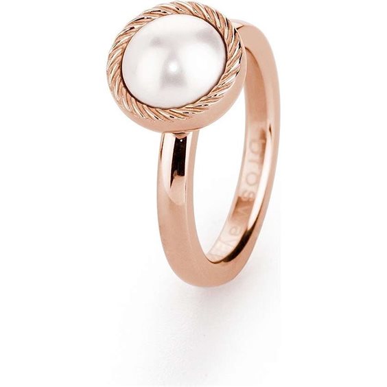 ANELLO IN ACCIAIO 316L, PVD ORO ROSA E PERLA CREAM ROSE SWAROVSKI., MIS.14.