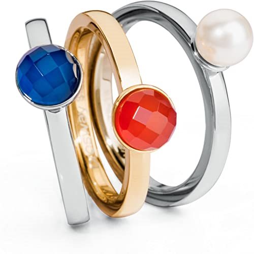 Anello Brosway SEGNO ZODIACALE VERGINE. TRILOGIA FORMATA DA TRE ANELLI IN ACCIAIO 316L E CRISTALLI SWAROVSKI: TGC 35 (Anello Tring in acciaio 316L Agata Blu) + TGC 27 (Anello Tring in acciaio 316L pvd oro e Agata Ross) + TGC 42 (Anello in acciaio 316L e perla Swarovski® Elements).