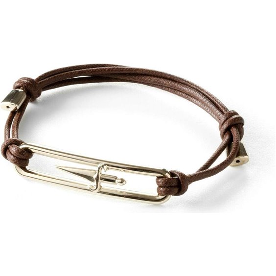 BRACCIALE IN LEGA METALLICA GIALLA CON CORDINO MARRONE REGOLABILE