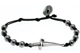 BRACCIALE IN ARGENTO E CORDONCINO. FINITURA SFERE SPAZZOLATA VINTAGE MAX MISURA 22CM MIN 16CM