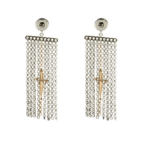 Orecchini Cesare Paciotti Jewels in argento pendenti con frange silver e rose gold e spadini. MARCA: Cesare Paciotti CONFEZIONE: Scatola originale Cesare Paciotti GENERE: Donna CATEGORIA: Orecchini COD.PRODOTTO: jpor0765b