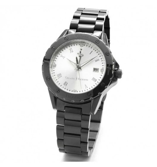 Orologio da uomo Paciotti con movimento al quarzo Miyota 2115 e funzioni di solo tempo con data. Cassa rotonda realizzata in acciaio inox con trattamento ip nero dal diametro di 38 mm. Ghiera in acciaio lucido nero. Quadrante argentè con indici a numeri romani color argento e datario a ore 3. Cinturino in acciaio anallergico nero; chiusura deployante con pulsanti. Resistente all'acqua fino a 50 metri di profondità.