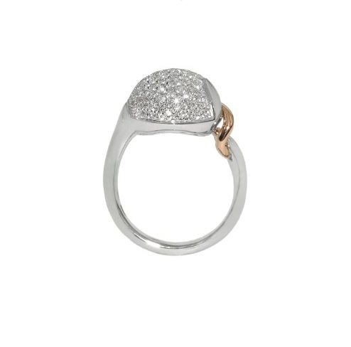 Anello in oro bianco e rosa titolo 750/1000 con incassati diamanti taglio brillante a pavè per un totale di kt. 1,26