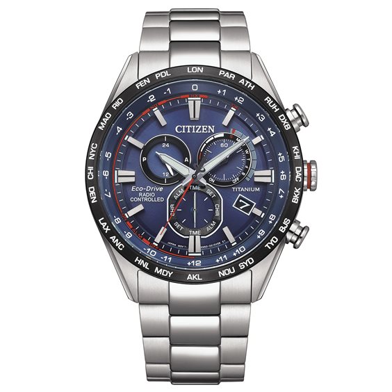 CB5945‑85L – Orologio cronografo radiocontrollato in titanio con vetro zaffiro e movimento solare Orologio tecnico e ultraleggero pensato per chi desidera precisione globale e funzionalità avanzate. La cassa da 42,5 mm è realizzata in super titanio con trattamento antigraffio, abbinata a vetro zaffiro e bracciale coordinato con chiusura deployante di sicurezza. Il movimento a ricarica solare garantisce un'autonomia fino a 300 giorni e include cronografo 1/1 sec, allarme, calendario perpetuo, world time su 24 città, UTC, formato 24h, indicatore di riserva di carica e ricezione radio multibanda. Il quadrante blu, con datario a ore 4, è rifinito con indici e lancette luminescenti. Impermeabile fino a 10 ATM. Diametro cassa: 42,5 mm Spessore: 12 mm Materiale: Super titanio con trattamento antigraffio Movimento: Solare (autonomia 300 giorni) Funzioni: Cronografo, allarme, calendario perpetuo, world time, UTC, giorno/data, 24h, riserva di carica, radiocontrollo Vetro: Zaffiro Bracciale: Titanio Chiusura: Deployante con pulsanti Resistenza all’acqua: 10 ATM Genere: Uomo Stile: Sportivo-tecnico Ideale per chi cerca performance elevate, materiali all’avanguardia e un design moderno e funzionale.