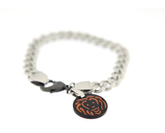 BRACCIALE IN ACCIAIO CON PIASTRINA DOPPIA STAMPA, LEONE DA UN LATO E SCRITTA FORZA DALL'ALTRO LATO