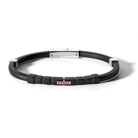 Bracciale Comete Uomo in gomma nera con elemento centrale in acciaio con trattamento PVD nero opaco e con spinelli neri - chiusura in acciaio. Lunghezza 21 cm. accorciabile. Scatola originale. Certificato di garanzia 2 anni.