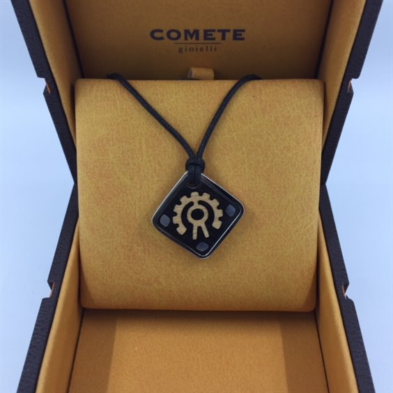 COLLANA IN ACCIAIO E LEGNO CON CORDINO ACCORCIABILE A PIACERE COMPLETA DI SCATOLA E GARANZIA ORIGINALE. SIGNIFICATO 'FORZA'