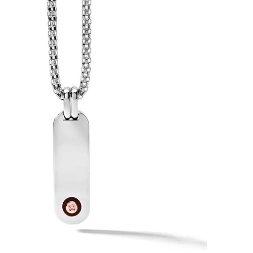 Collana Comete Uomo in acciaio con ciondolo forma lingottino( 30 x 10 mm.- spessore 3 mm.)in acciaio lucido con vite trattamento PVD oro rosè . Lunghezza catena maglia tubolare a cordoncino 50 cm.- chiusura a moschettone. Scatola originale.Certificato di Garanzia 2 anni.