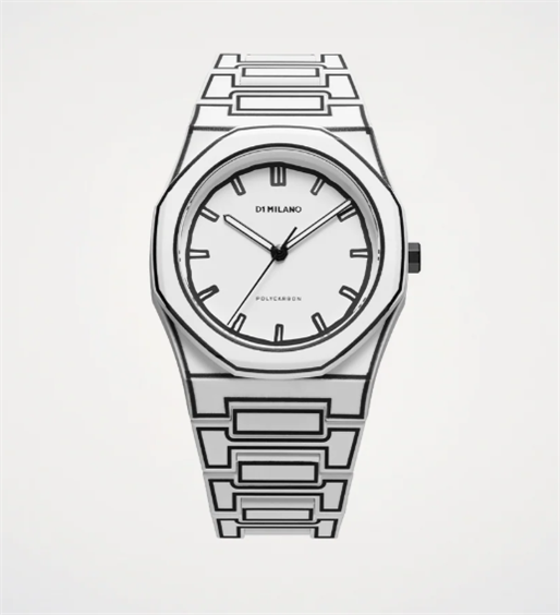 Da lontano, il design del nuovo Polycarbon Sketch potrebbe non sembrare nulla di eccezionale, ma a un'analisi più attenta, gli amanti degli orologi vedranno che l'intero orologio assomiglia a bozzetto di disegno. Il prodotto vuole essere un accessorio di design più che un semplice orologio da indossare. Abbiamo cercato di invertire il processo replicando il disegno su carta nel prodotto finale, incarnando la sua origine bidimensionale nella realtà tridimensionale. Materiale della Cassa Polycarbonato, Rivestimento Soft-Touch Cinturino Polycarbonato, Rivestimento Soft-Touch Chiusura Chiusura a scomparsa Lunetta Policarbonato Bianco Fondello Acciaio Inossidabile Quadrante Bianco Opaco Lancette & Indici Neri Vetro Minerale, Finitura Antiriflesso Movimento Seiko VJ21 Resistenza all'Acqua & Peso 5ATM,54g SKU code D1-PCBJ34