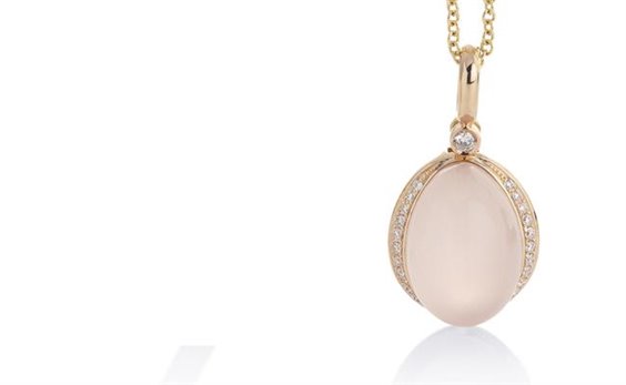 Collier DONNA ORO con catena in oro rosa e pendente ovale in quarzo rosa ct 6.00 e diamanti taglio brillante ct 0.12
