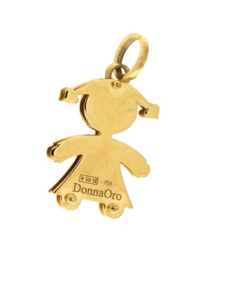 Pendente a forma di bambina in lastra doppia d'oro giallo 18Kr