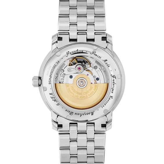 Classics Heart Beat Moonphase Date presenta un quadrante finemente decorato: una classica decorazione guilloché Clous de Paris sublimata dai numeri romani tradizionali. L’iconica apertura a ore 12, tipica dei segnatempo Heart Beat, svela lo scappamento in movimento costante. L’orologio ha le funzioni ore, minuti, secondi, fasi lunari e un indicatore della data.