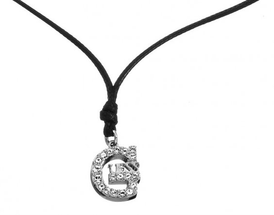 Collana donna Guess Gioielli con cordino nero e pendente Guess con strass bianchi.Lunghezza 40 cm piu' 5 cm di estensione