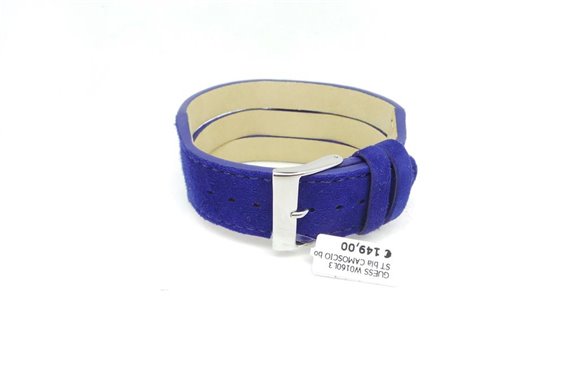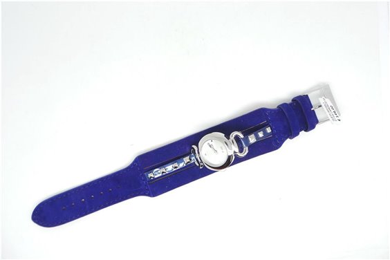 Orologio Guess solo tempo sfondo bianco metallizzato. Cassa in acciaio mm 25, cinturino in camoscio mm 32 blu e borchiette in acciaio . Corona a pressione, fondello a pressione. Water resistant. 2 anni garanzia.