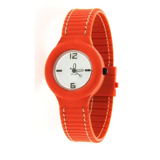 Movimento al quarzo Cassa 32mm W.R. 5 atm. Cinturino in gomma rivestito in pelle Cuciture a contrasto Quadrante tridimensionale.