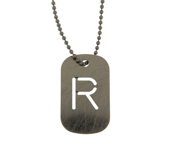 COLLANA UOMO IN ACCIAIO CON PIASTRA SATINATA LETTERA R