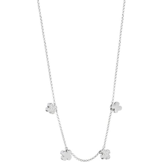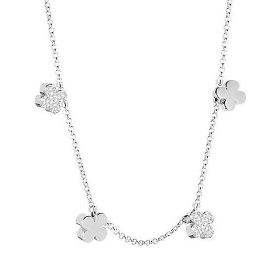 Collana, Quadrifogli 3D con zirconi e lisci. Lunghezza 37-45 cm. Argento 925. Made in Italy.