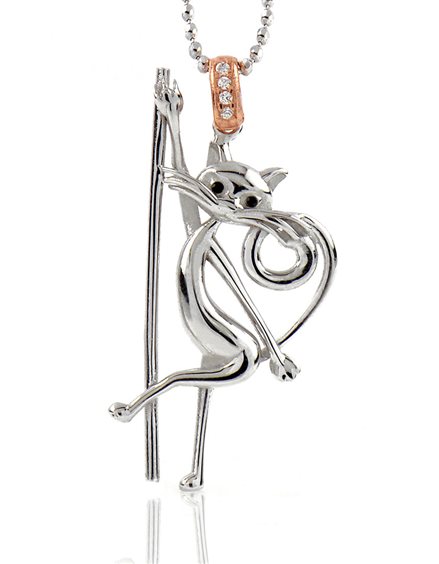 collana in argento con pendente gatta trendy con zirconi bianchi naturali sulla contromaglia e zirconi neri negli occhi.Lunghezza catena cm. 45 accorciabile grazie ad anelli finali. L'azienda in collaborazione con i concessionari, effettua ogni anno una donazione percentuale a favore dell'ENPA.