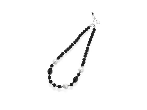 Collana in AG925, perle FW, ema. e onice - 45 cm.