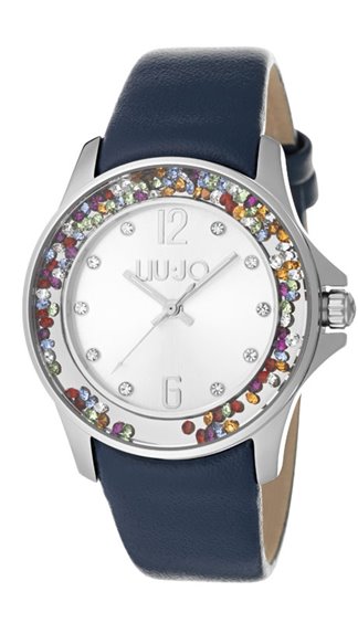 Un continuo movimento, una danza leggera, il tripudio di cristalli che identificano la linea. Colpisce per la sua originalità e la voglia di cogliere tutte le scosse emozionali di una vita dinamica Movimento al quarzo Miyota calibro 2036 Funzione solo tempo cassa in acciaio diametro 37mm ghiera con cristalli multicolor vetro minerale ad alta resistenza corona in acciaio con cabochon quadrante con finitura sunray, indici con cristalli bianchi e logo in Upper Plating Bracciale in pelle blue scuro, chiusura con logo inciso a laser Impermeabilità 5 atm