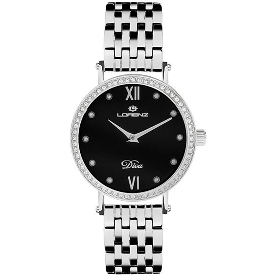 Orologio da donna solo tempo marca lorenz. Cassa rotonda in acciaio diametro 30 mm e vetro minerale. Cinturino in acciaio e chiusura a farfalla. Movimento al quarzo Ronda RL762. Resistente all'acqua fino a 5 atmosfere.