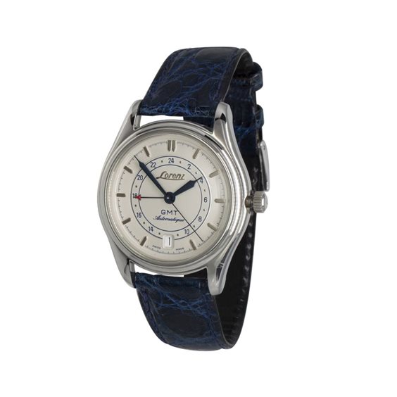 Orologio automatico con funzione GMT, datario al 6, secondi al centro. Indici applicati, il quadrante riporta al centro le ore della funzione GMT. Corona serrata a vite, il fondello è chiuso con 5 viti. Serie limitata a 500 pezzi, il pezzo in oggetto è il N° 129. Cinturino in pelle con chiusura deployante. Monta movimento svizzero ETA 2893-2 con 21 jewels.
