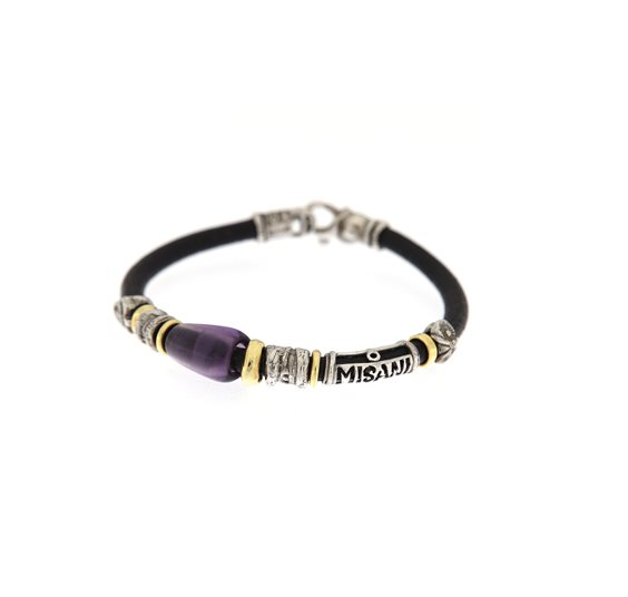 BRACCIALE MISANI IN CUOIO CON INSERTI IN ORO GIALLO E ARGENTO. DIAMETRO MISURA CM. 7