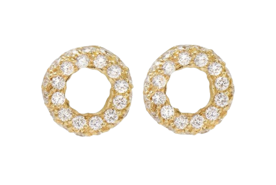 Orecchini a lobo in oro giallo 18kt impreziositi da diamanti bianchi taglio brillante. Chiusura con perno e farfalla. Dimensione media.